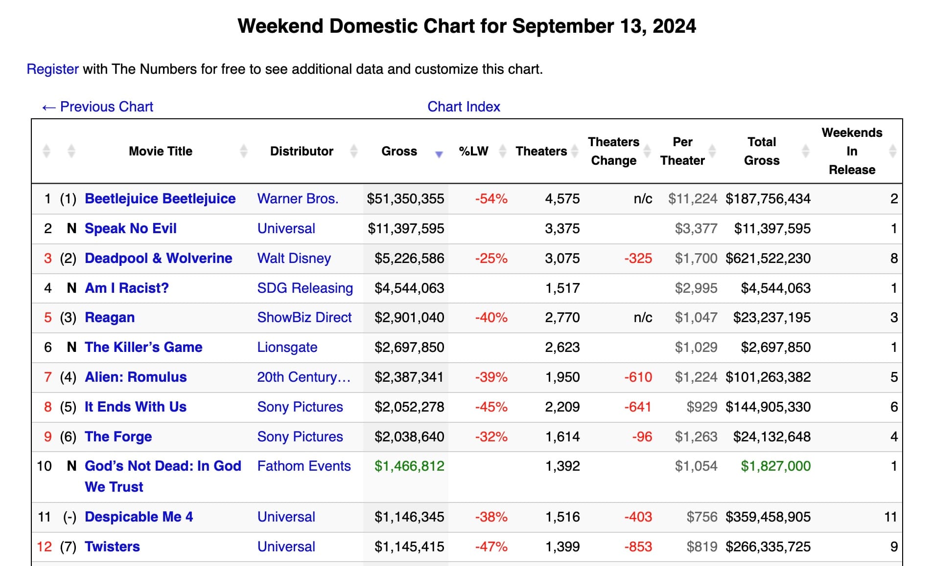 Matt Walsh's "Am I Racist?" is now outgrossing many Hollywood films with big stars, such as Fede Alvarez's Alien: Romulus, Dave Bautista's The Killer's Game, and Blake Lively's It Ends with Us. It made top 4, with $4.5 million coming in only this weekend, already making back it's money.