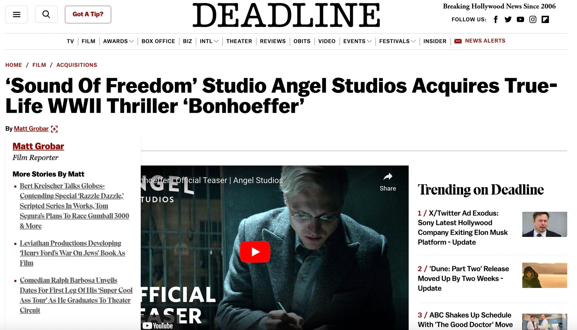 Angel Studios announces its acquisition of Bonhoeffer, a film about the infamous man of faith who struggled to stop Adolf Hitler during the Second World War. He tried to consolidate the true church in Germany, and then he tried to work from within Germany to sabotage and then assassinate Hitler, but this was far outside of what he expected he'd have to do to liberate his people.