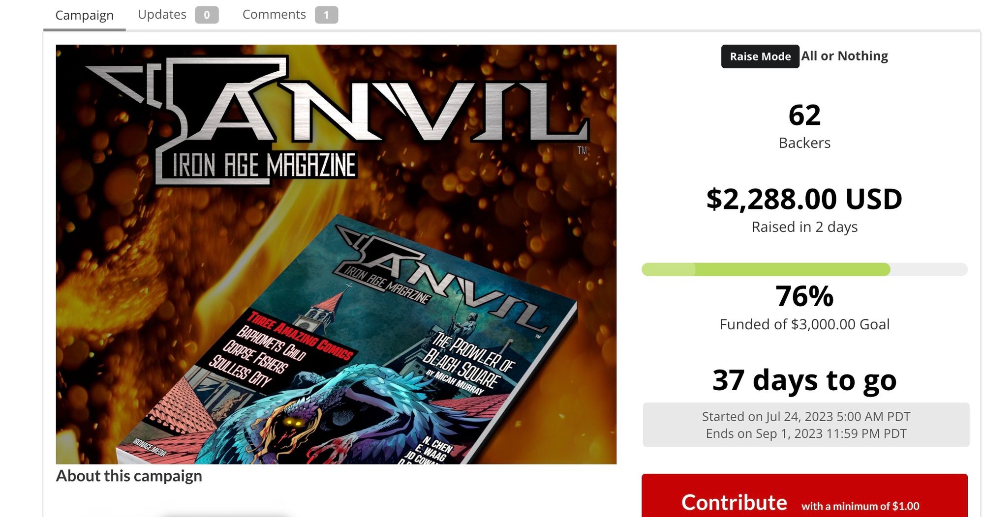 Their 1st issue campaign was on IndieGoGo here, and is now completed. They are now funding their 2nd issue, and you can see their campaign here, which has just begun only days ago!