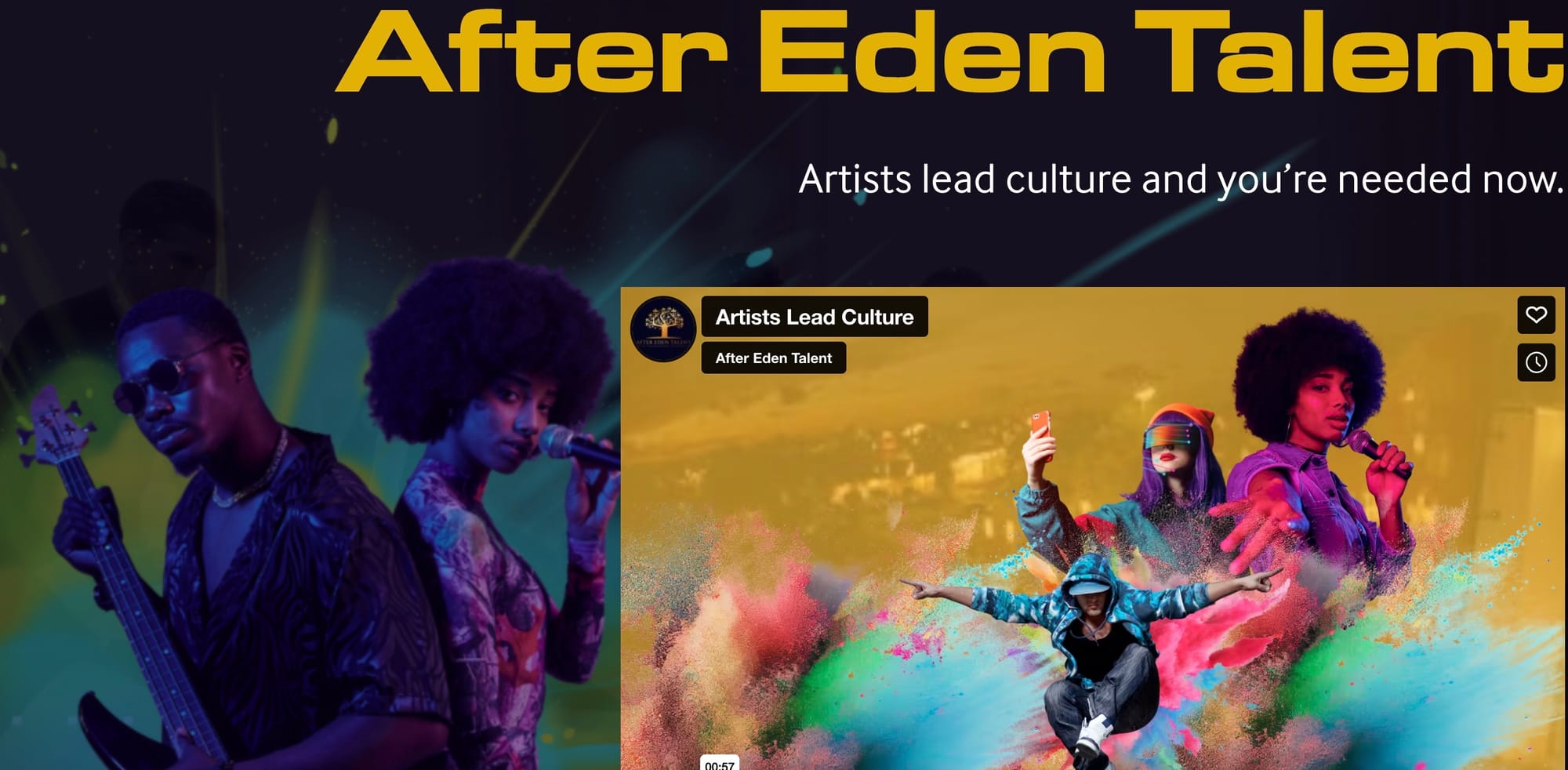Go to After Eden Talent's site, their Instagram, or register for their latest Showcase of talent here at https://app.afteredentalent.com/.